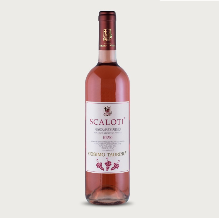 Questo vino rosato Negroamaro Salento IGP, Scaloti, prende il nome dalla Contrada in cui sono impiantati i vigneti di Negroamaro di circa 20-30 anni d’età, allevati ad alberello. È un ottimo vino rosato che consigliamo in abbinamento con la pizza o con la classica frisa salentina.